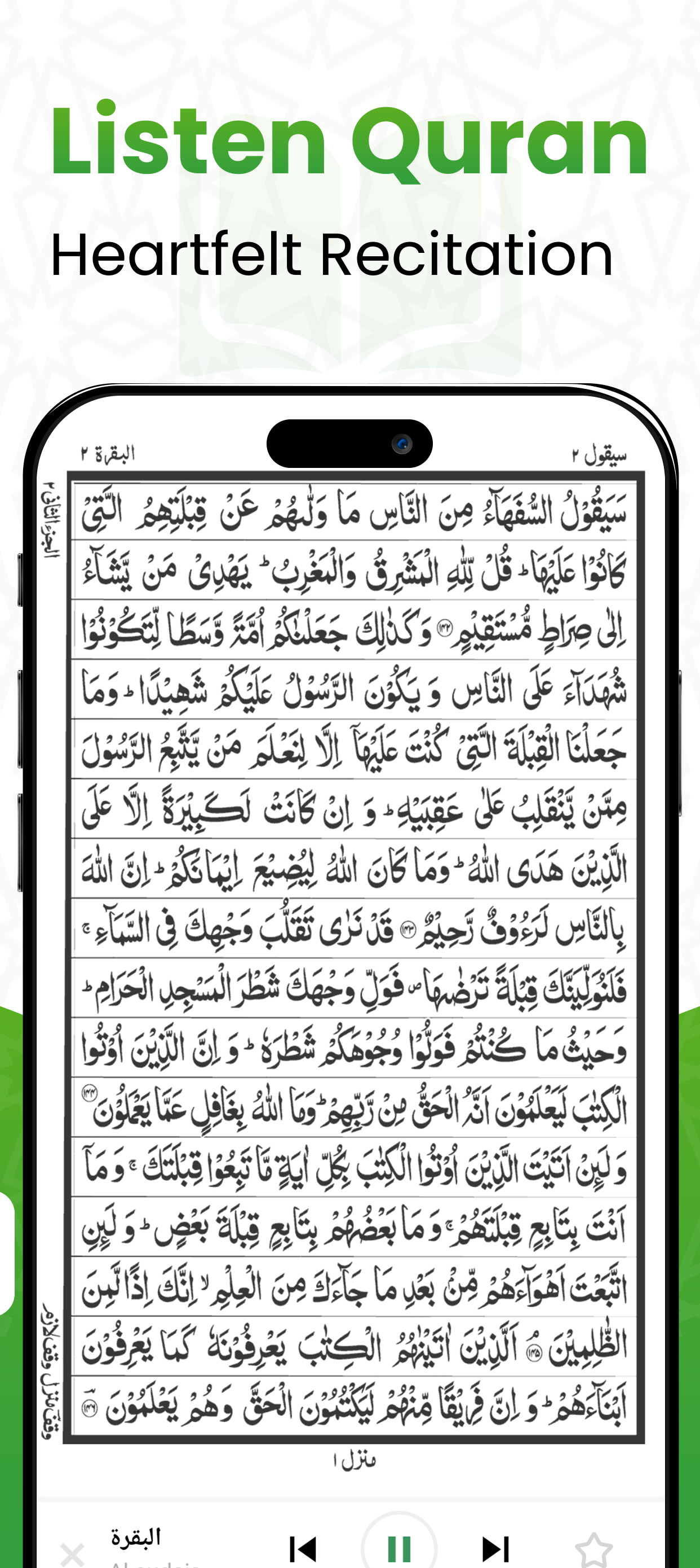 Recite Quran Sharif with real feeling, just like an actual Quran in your hand.