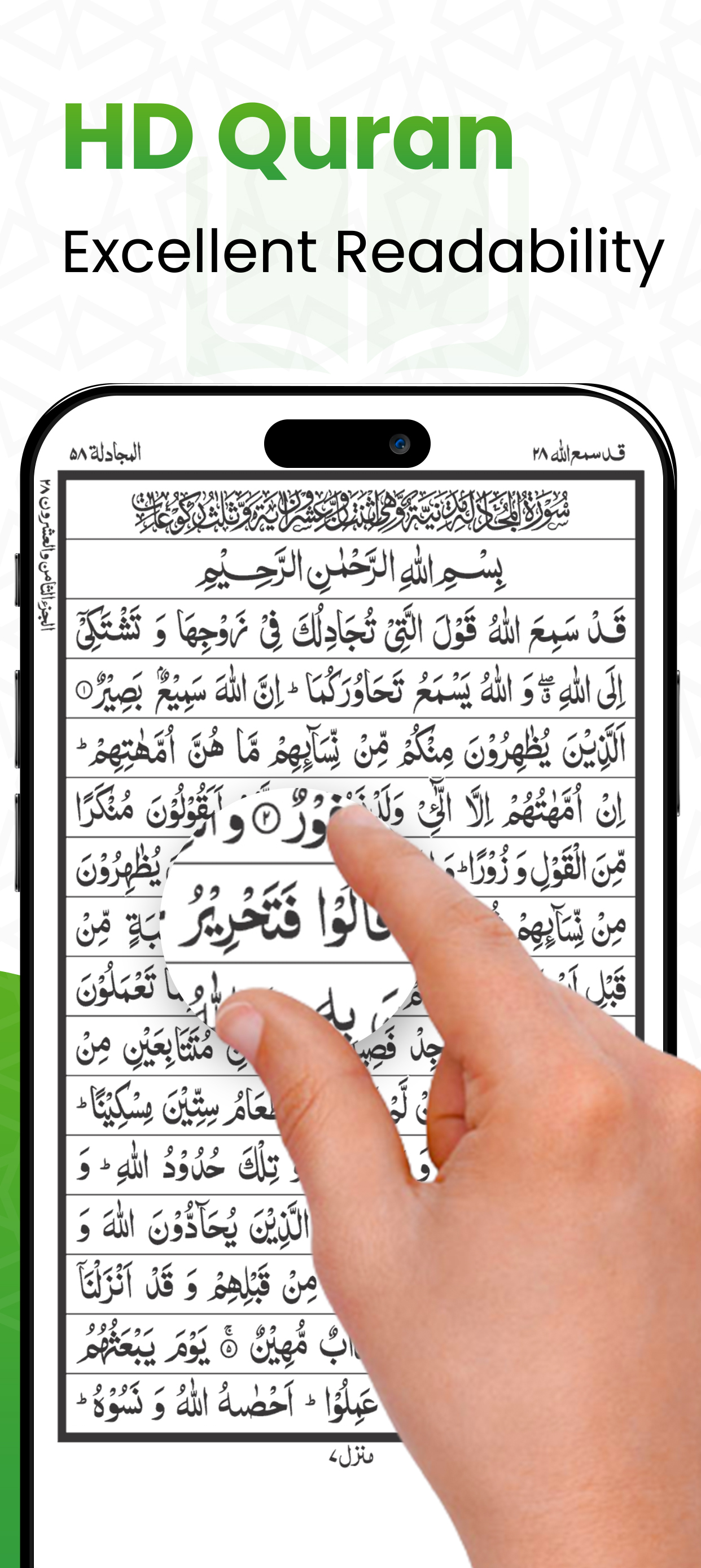 The Quranic words and verses are lined up in 16 lines on each page and that is attractive and pertains standardized readable font style and size. Complete Quran app is free for all.